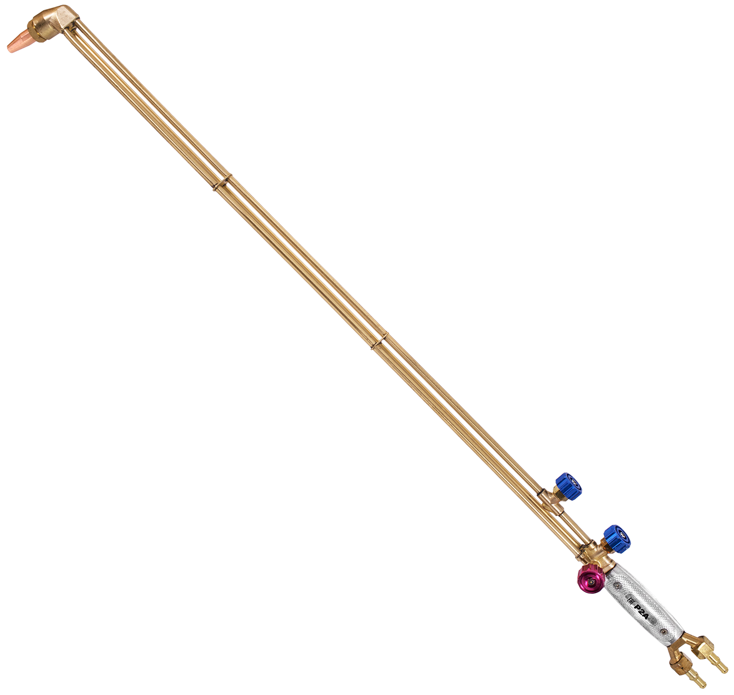 Резак трехтрубный ацетилено-кислородный удлиненный с внутрисопловым смешением газов предназначен для резки раскроя и разогрева деталей, заготовок, листового и сортового проката из черных металлов. За счет внутрисоплового смешения газов резаки имеют повышенную стойкость к обратному удару и способны длительное время работать в тяжелых условиях. Резак имеет стандартный мундштук «ANM» и совместим с мундштуками других производителей