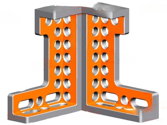• Упорный угол D16 200х150х50 (L) — оснастка для слесарно-сборочных столов с диаметром крепежных отверстий 16 мм.